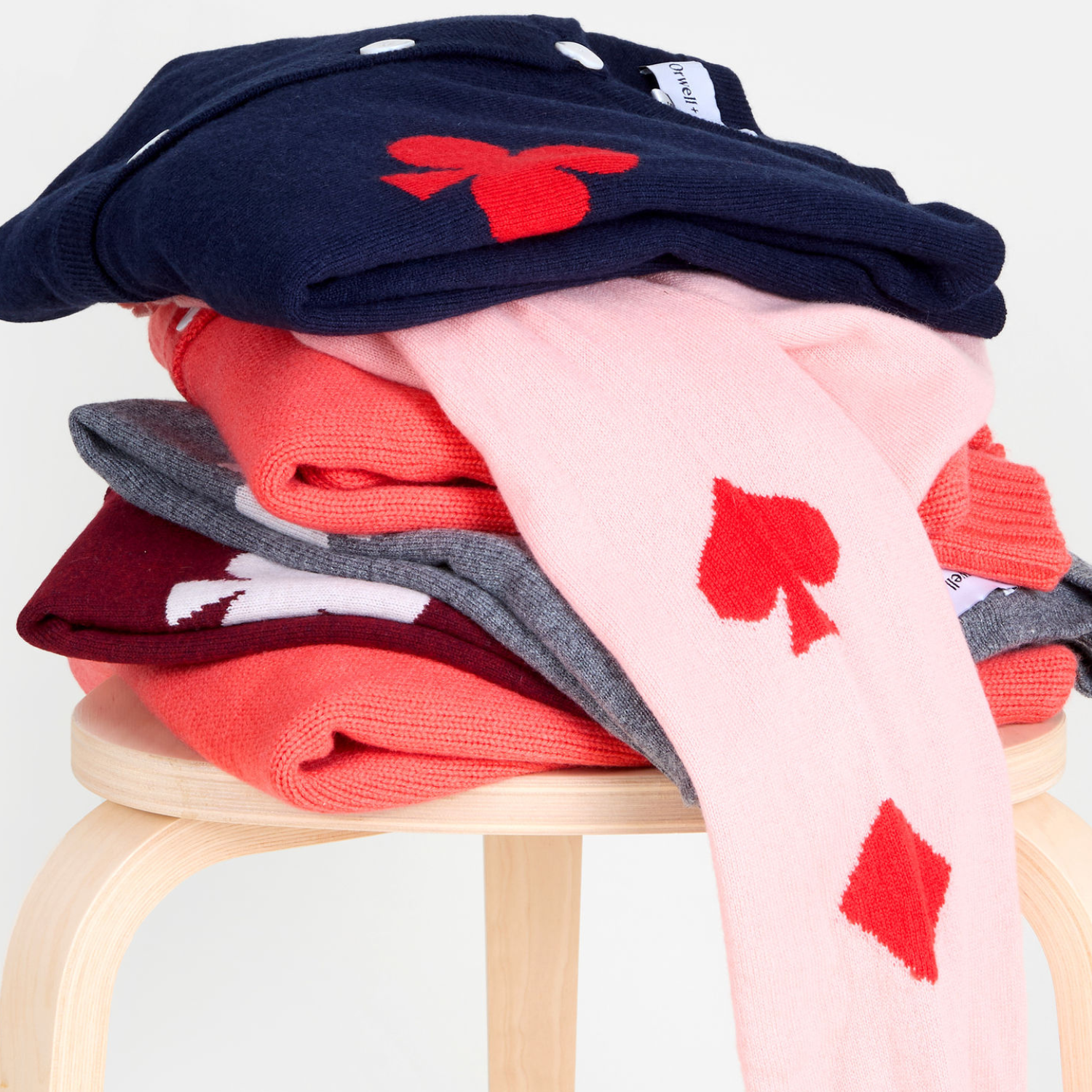 Throughout our product range, you will find materials of only the highest quality. Our sweaters and cardigans are made of either recycled cashmere, a cashmere and fine wool blend, and occasionally a very fluffy 100% virgin cashmere (which is the only time we will use 100% virgin cashmere).